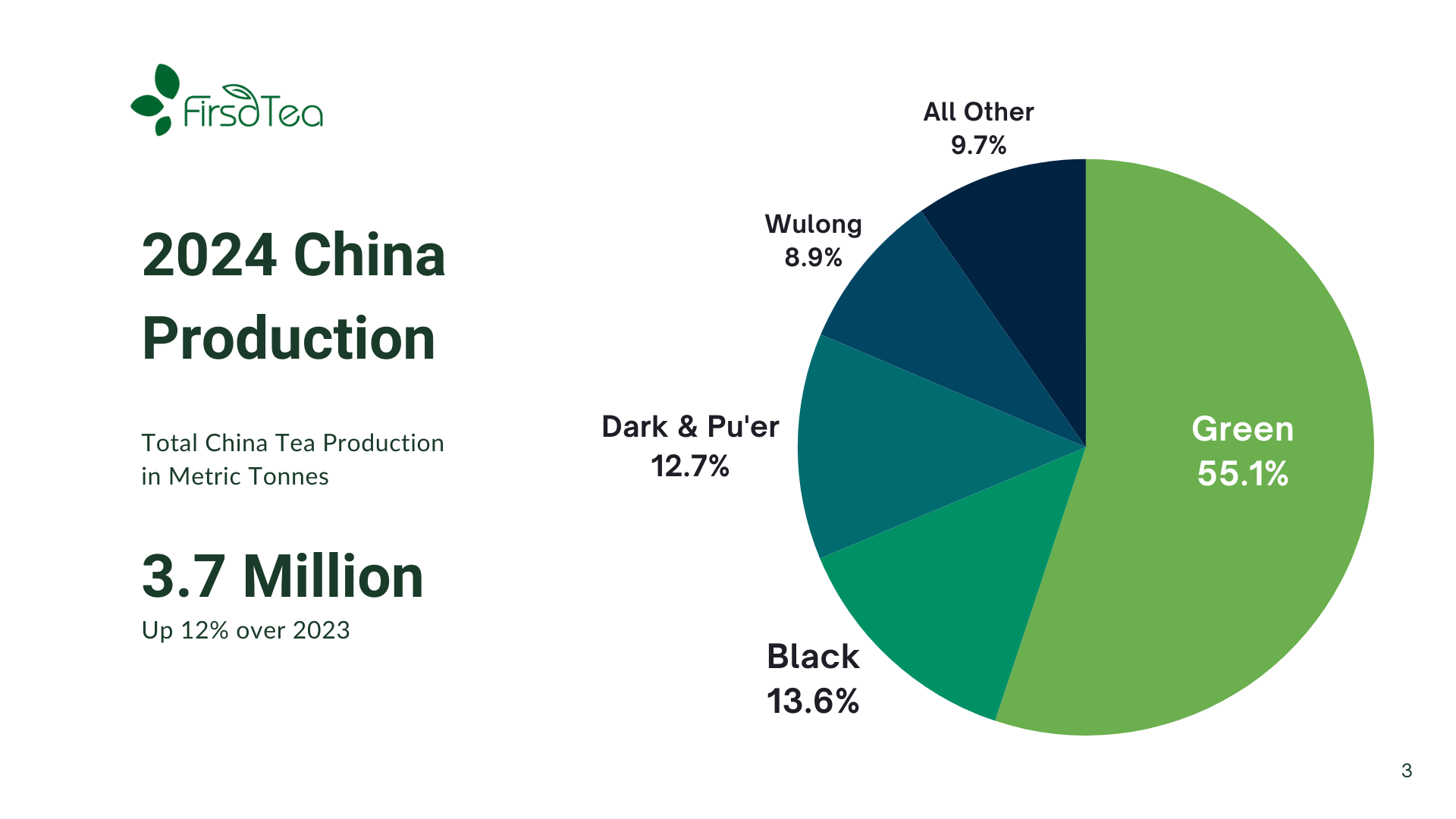 2024 saw continued growth for the global tea industry, in terms of overall production and exports from tea-producing countries. Along that same pattern, China saw expansion in tea acreage, production, and exports. This growth further secured China as producer of over half of the world’s tea, the top green tea producer, and the nation’s western provinces as the largest tea-producing segment within the country. Tariffs and trade relations with the U.S. may affect a thin slice of China’s global tea trade, but increasing domestic consumption and the strength of larger, more critical export markets can easily dwarf these trade war concerns.