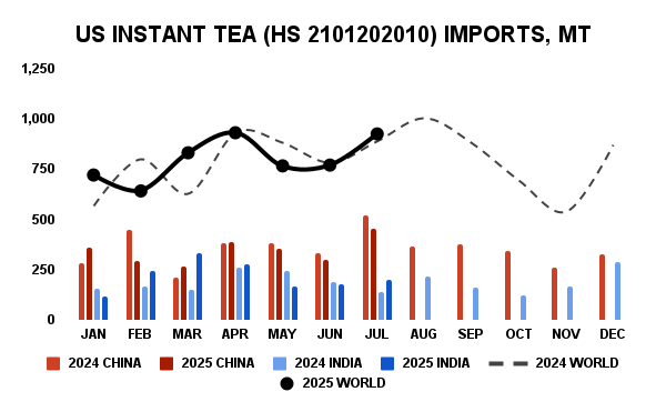 Data from the US Census Bureau (GATS) was recently published regarding US instant tea imports for July 2025.