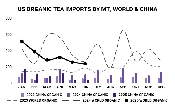 - 16.1% of the month’s US ORGANIC tea import volume was from China (28.9% YTD)
