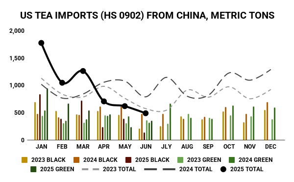 Data from China Customs and the US Census Bureau (GATS) was recently published regarding China exports and US imports of tea for June 2025.