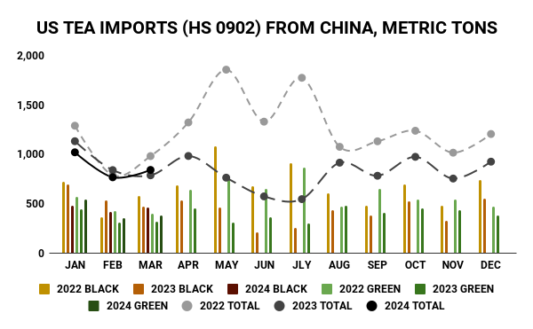 Data from the Tea Industry Committee of China Association for the Promotion of International Agricultural Cooperation, and the US Census Bureau (GATS) was recently published regarding China exports and US imports of tea for March 2024.