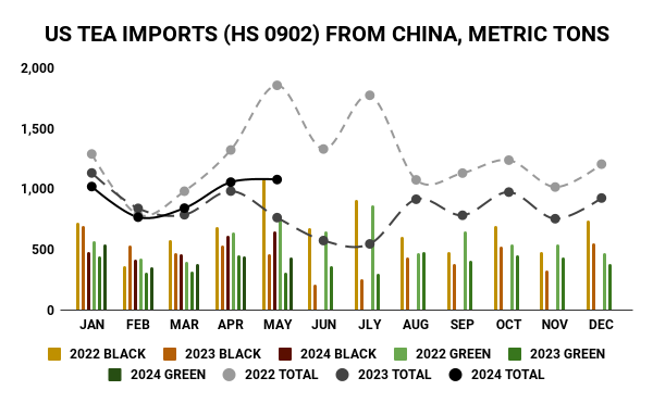 Data from the Tea Industry Committee of China Association for the Promotion of International Agricultural Cooperation, and the US Census Bureau (GATS) was recently published regarding China exports and US imports of tea for May 2024.