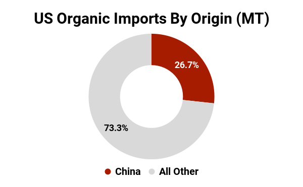 - 26.7% of the month’s US ORGANIC tea import volume was from China