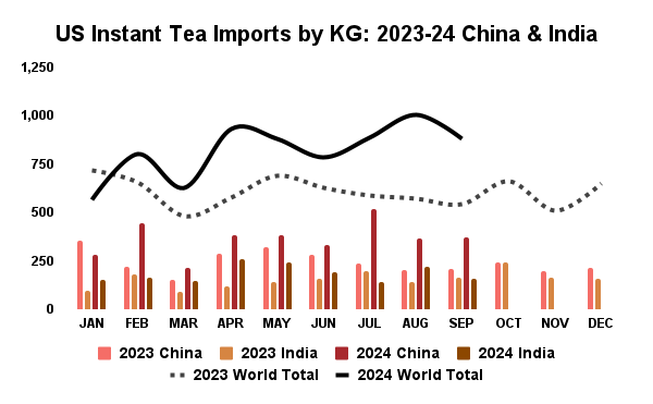 Data from the US Census Bureau (GATS) was recently published regarding US instant tea imports for September 2024.